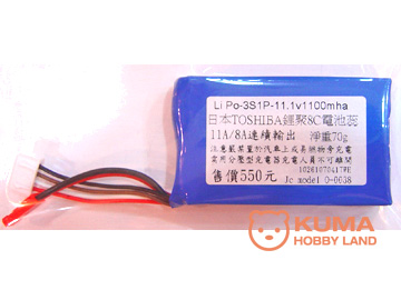簡  介: TOSHIBA 11.1V 1100mA 8C鋰聚電池,重量70g